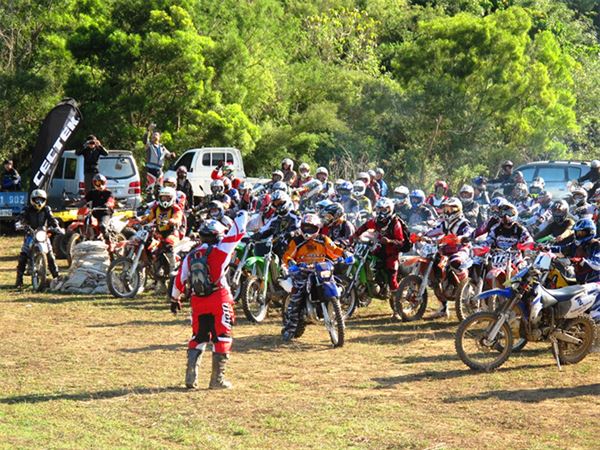 隔天早上車友準時出現在出火草原集合,因為林道騎乘正是會師活動的重頭戲。大家在草原上整理車輛裝備,主辦人阿國和大家打招呼並為與會車友解說路線、號誌與注意事項。並特別感謝嘉元車業贊助第八屆墾丁大會師的300枚記念獎牌,以及負責壓隊的服務志工團隊屏悅車隊和熊野摩托等各大贊助單位。不同上次在出發點就發送紀念章,本次車友必須騎乘到中繼站的時候,才會頒贈會師紀念章,只好對向中途退出的車友說抱歉了。在草原上拍過紀念大合照後,數百輛越野車一聲令下後,如脫韁野馬全速奔馳。