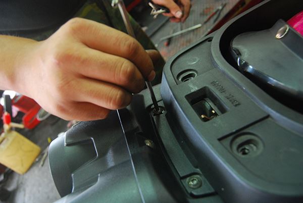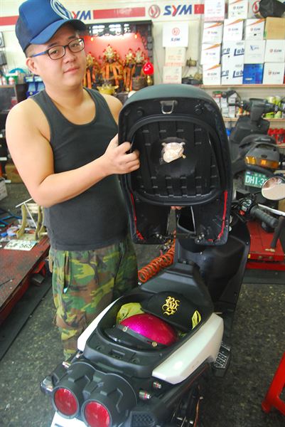取下椅墊、置物箱後,便可看到引擎、油箱