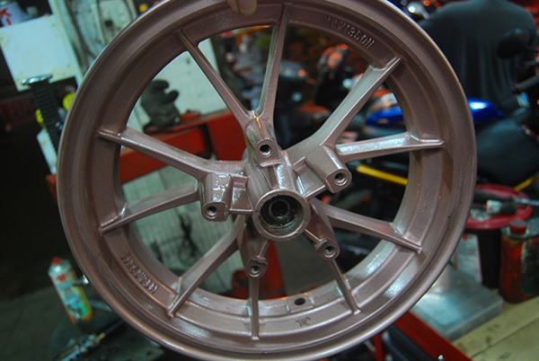 先從輪框外側開始噴起,一開始都噴薄薄一層即可