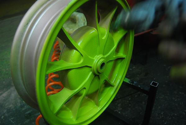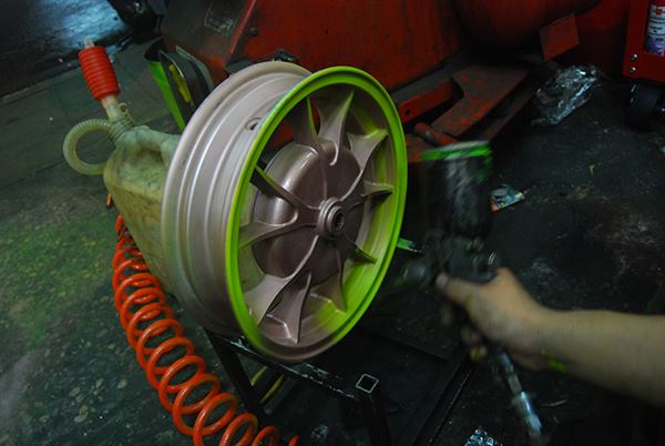 輪框噴漆準備與開始