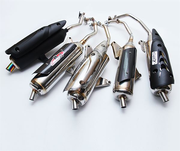以檔車來說,排氣管能提升的性能比較明顯,這是因為排檔車有手動變速箱的特性,可以利用排氣管將引擎動力帶向後延伸,來達到更大馬力。大多數的檔車動力帶都在6000轉左右,但速克達卻受限於CVT自動變速系統,原廠的自動變速約在3000轉離合器就會銜接,失去了引擎靠拉高轉去榨馬力的優點。但騎速克達的朋友也不要灰心,因為這能靠改變離合器銜接的轉速值來達到類似的效果。不過這有其缺點在,假設離合器改到6000轉才銜接,那麼在市區騎乘時,車輛催油加速在初期會變得很不線性,不習慣的人容易暴衝出去,而且油耗也會增加許多。一般改裝速克達的店家,會先測量引擎的最佳出力點,再設計其排氣管,最後再依要求去配置適合的轉速銜接帶。