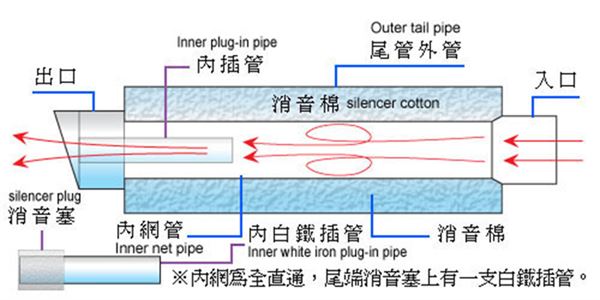 尾段材質:白鐵 前段材質:白鐵 管內設計:半直通