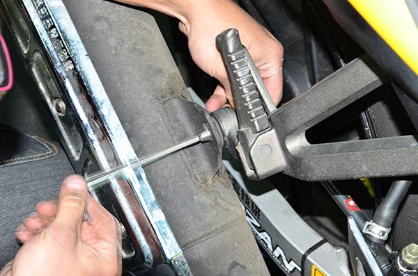 將後搖臂上的下鎖點螺絲鬆開。