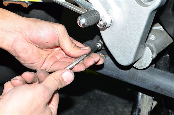 將排氣管套環鎖入後腳踏鎖點中。