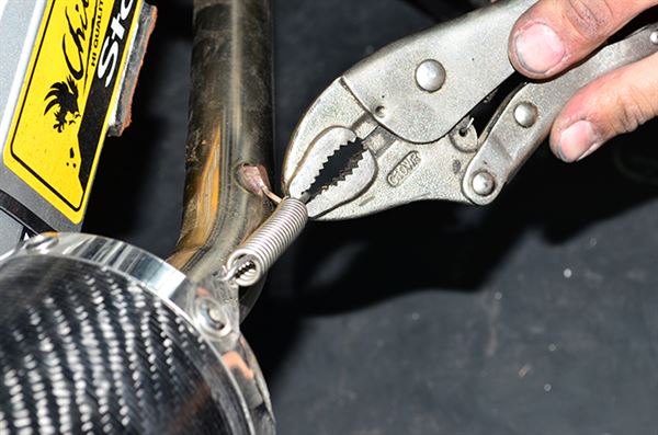 將排氣管前段與尾段的銜接彈簧套上即可。