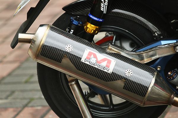 在國內各大速克達賽事都證實了M-Power的排氣管的性能,在全台各地都有其擁護者與愛好者,特別的M字型的防燙蓋是其特點之一。