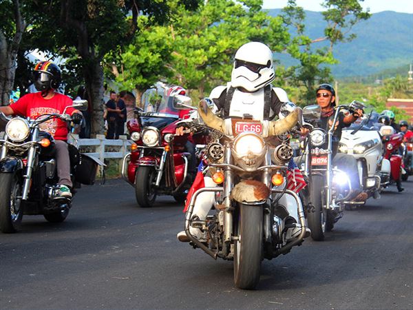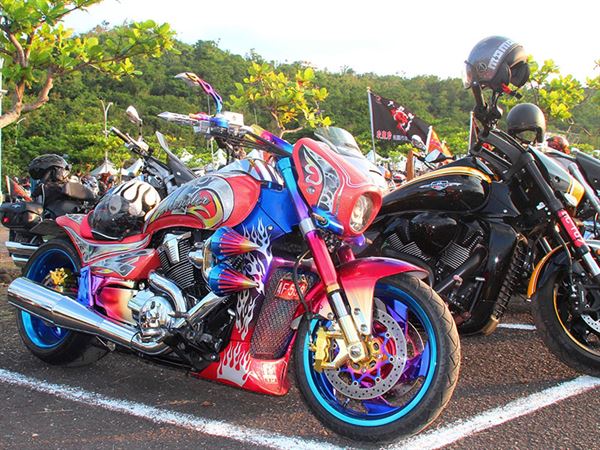 這一天,來自全台各分會上千輛美式重機氣勢磅礡的分批進場,場面壯觀,一輛比一輛更加吸睛,今年更有哈雷車隊、印地安車隊和寶馬車隊共襄盛舉。現場還有包括九號倉車庫、疾道車業等攤位可逛,有可以拍攝合照的背板與辣妹Show girl一起留影,下午還提供烤大豬等美食讓大家先墊墊胃!
