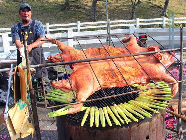 香噴噴的烤大豬供美式機車族人分享