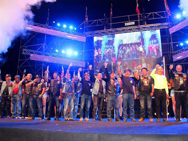 入夜後晚會一開始由各車隊代表騎車上台讓大家認識,公屏會華哥和天母幫主良哥等人致詞,上菜後還有辣妹舞蹈和精彩的模仿秀等一連串表演,以及燦爛的煙火秀和抽獎活動,今年晚會更連女性朋友都照顧到了,Man Power猛男秀一出場讓在場女眷陷入瘋狂,車友也衝上台又唱又跳,這場靜不下的會師大成功!