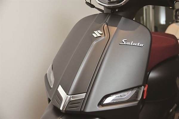車迷廣布的SUZUKI向來以打造熱血賁張的賽道機器聞名。然而積極拓展新藍海的SUZUKI並不以此自滿,首度以細膩的設計風格進軍精品速克達市場。一改簡約線條,濃濃的義式情懷貫穿全身。由義大利名設計師AlessandroTartarini 親自操刀,打造令人耳目一新的經典外型。同時與日式精美工藝結合,混搭出前所未有的移動逸品,Saluto擁有七大義式典雅設計,前斜板採對稱稜線沿伸到尾部,給予平衡的視覺美感;鷹翼式側線展現優雅和銳氣並存的個性;雙車縫線皮革座椅搭配環抱式鍍鉻尾架,復古又不失實用性;全車採用汽車等級LED 燈具不僅充滿時尚亮點,更保障行車安全。俐落的LED定位燈無論在白天黑夜都是矚目焦點;雙色按鍵面板展現義式設計的細節之美;精巧置物空間給予更多的放置便利性。