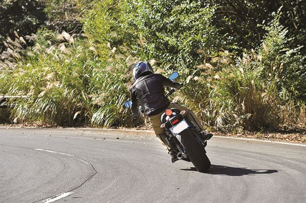 將整個頭部朝向轉彎方向時,身體的重心自然地會移到內側,再把肩膀整個轉向內側時,重心比較不容易分散,而且看起來也是非常帥氣的騎乘姿勢。