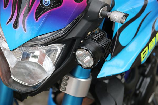 前面的BREMBO卡鉗再加上後面卡鉗下移以及OHLINS避震器讓他在性能上已堪稱是完美之作。車主在車頭的部份另外加裝了一顆獨立式的定位小燈,使得不論是在行車上或是外觀上都更上一層樓。