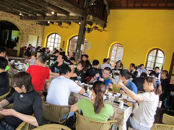 在莊園餐廳內用餐的情形,彼此話題都是圍繞在車子,非常熱鬧。