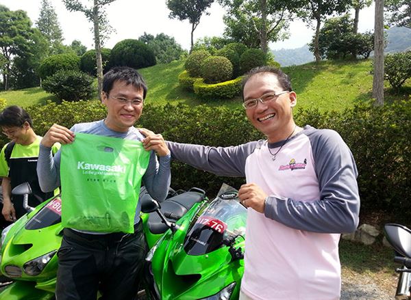 主辦人小蔣轉贈由台崎公司贊助的鑰匙圈給與會ZX-14R車主們留念。