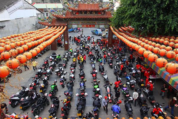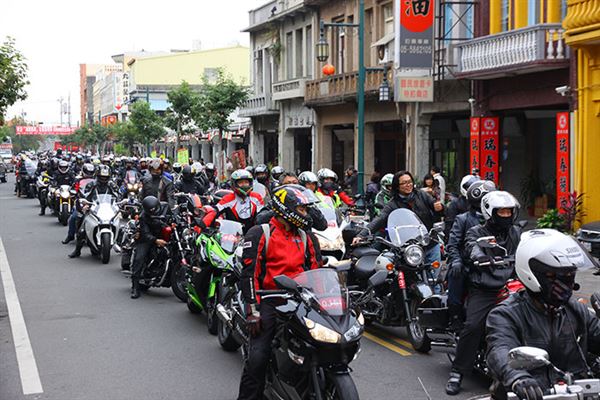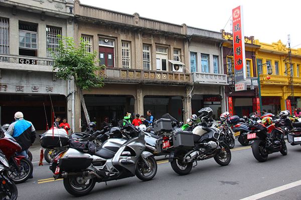 車隊一抵達老街,就受到了當地地方人士及民眾的熱情招呼,紛紛合影留念,展現出濃厚的人情味,稍作休息過後,大夥們就前往古蹟廟宇福興宮準備用餐,小鎮頓時間街頭巷尾都看得到重車騎士們的身影,小小的地方在當地「後備憲兵隊」的交通指揮下,非常順利的抵達目的地,主辦單位在廟前廣場準備了菜色豐富的自助餐讓車友們享用,並且在茶餘飯後參拜這將近三百年歷史的廟宇。