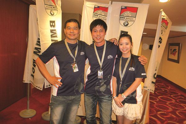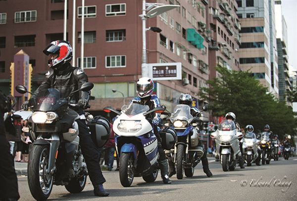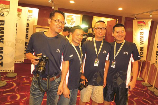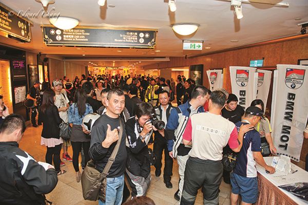 雖然颱風轉向,但仍然為北部地區帶來風雨,所以台北車友只能冒雨出發,但越往中南部天氣好轉,當到達港都高雄時,竟是陽光普照,讓人熱得直冒汗,不愧是熱情的南台灣。當大批BMW重機陸續抵達金典酒店會場,包括路過民眾和飯店的工作人員也不禁好奇駐足圍觀。其中台中自由騎士團的隊長麋鹿以拖車載運大改的愛車前來,更是吸引大家上前拍照,而他的夫人和丈人也一同騎車前來,真是令人羨煞的重機家庭。