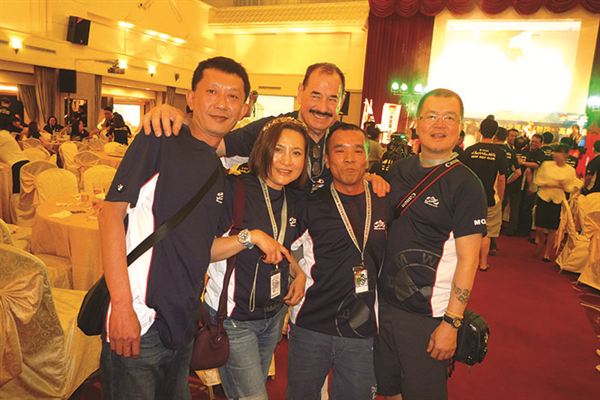 寶馬車隊前後任會長(右一、二)與MOT新任會長喜哥(左二)相見歡。