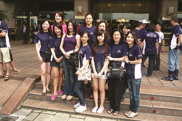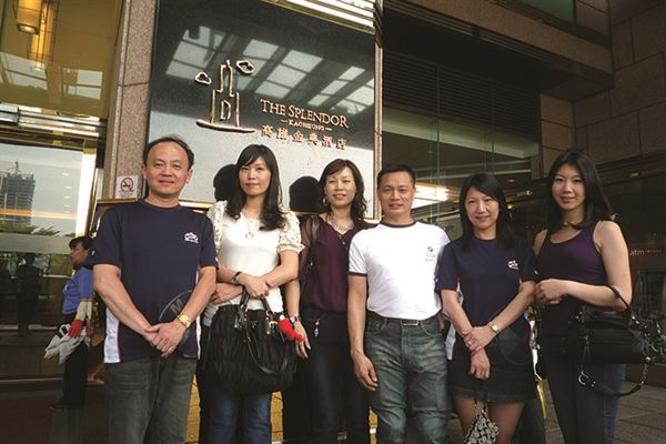 榮譽顧問憲哥等幹部與對本次會師大力協助的王小姐(左二)在飯店前合影。