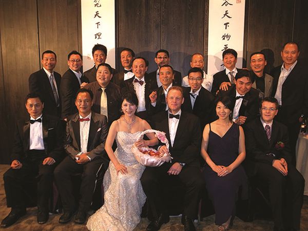劉福車隊的劉理事長(左)與大家一起高興舉杯同歡。
