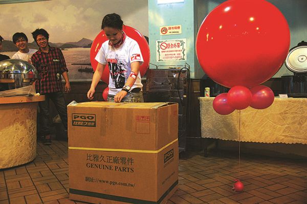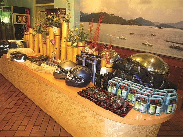 在報到工作完成後,就讓遠道而來、飢腸轆轆的車友們入座用餐,同時一邊進行抽獎活動。承蒙各界的贊助支持,獎項十分豐富,有全罩式安全帽、高品質機油、行車紀錄器、HONDA原廠機油濾芯、手機吊飾、鑰匙圈、AGV原廠透明鏡片、大牌彩鈦螺絲、油箱貼、瑞士反光防摔衣、小帽等等。還有車友特別贊助的最大獎「神秘禮物頭獎1名」,一個幾乎半個人高的大紙箱擺在那,讓人實在好奇。