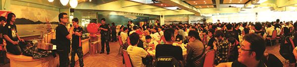 將日月潭青年活動中心餐廳擠滿的用餐盛況。