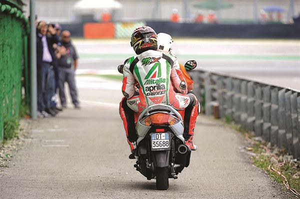 Biaagi練習時受傷,工作人員騎出新勁戰來載比叔回PIT。