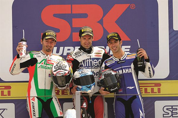 第一戰頒獎台,兩個義大利人Biaagi跟Melandri與西班牙人Checa共享榮譽。