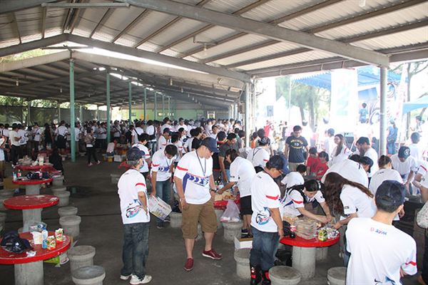 就在接近中午的時候,來自台灣北區各地的三陽車主陸續的抵達目的地「新竹小叮噹遊樂園」,而這時候,三陽的工作人員早就安排好主舞台以及午餐等著車友的來到。