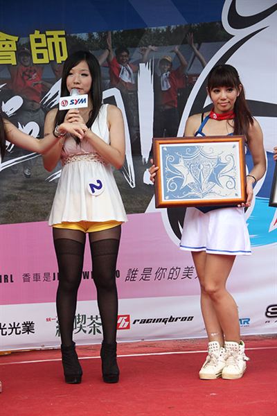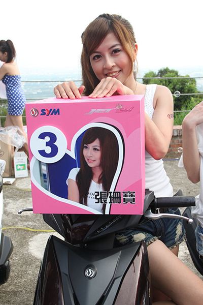 八位甜美Jet Girl逐一上台開始自我介紹,為了爭取現場車友們的支持與票數,每一個Jet Girl美眉無不使出渾身解數,從說冷笑話、才藝表演、裝可愛及十連拍等等,希望能夠受到現場男車友們的青睞。
