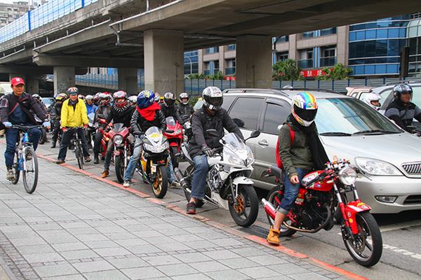 車友們在遊行路線上,保持良好駕駛素養