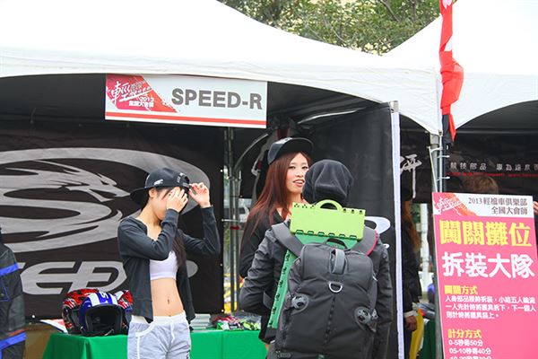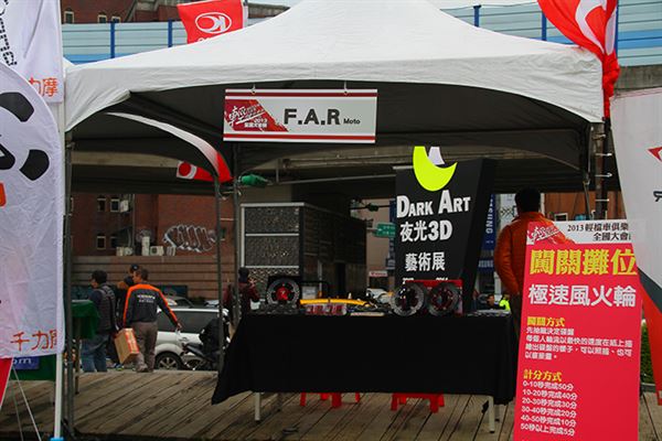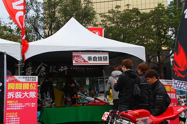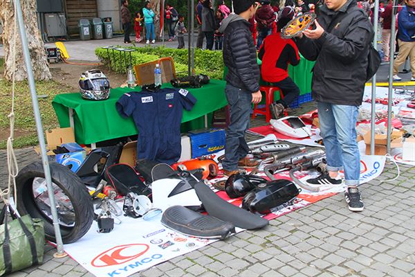 主辦單位在華山藝文特區內安排許多家廠商,展示許多實用、特別的改裝精品,同時開放車友們參加跳蚤市場和創意市集,交流彼此的改裝料件,尋找自己需要的寶物。而最吸引人的活動就是各家廠商贊助的精品抽獎,和KYMCO的全民抓翹課活動,獎項內容相當豐富,有許多增加安全性的改裝套件,以及行車紀錄器、安全帽等等騎士部品,最高的獎項則是KYMCO提供的A.I.R 150一台,非常有吸引力。而在抽獎過程中也是驚喜交集,每一次抽出得主,總是夾雜著歡呼聲和失落聲,氣氛非常熱鬧。