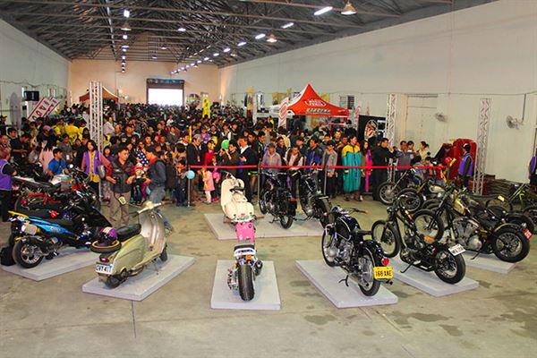 台東糖廠倉庫活動場地的攤位與車輛展示,吸引了眾多人潮