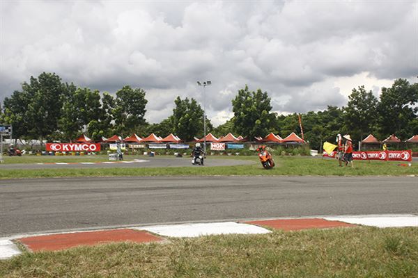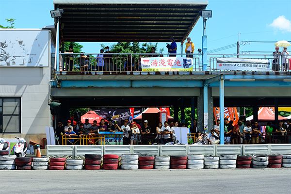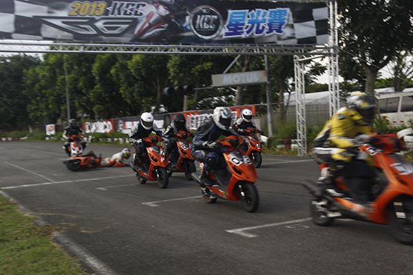 在所有車手確定就位之後,裁判長大旗一揮,熱烈的星光賽正式開幕!取得竿位的王星翰率先衝出,二位黃鶴寬緊跟在後,高至均則衝到第三位,全場唯一的女車手劉君眉,騎乘酒紅色的G6竄至第四位,原本排位第三的伏圃儀則掉到第五。
