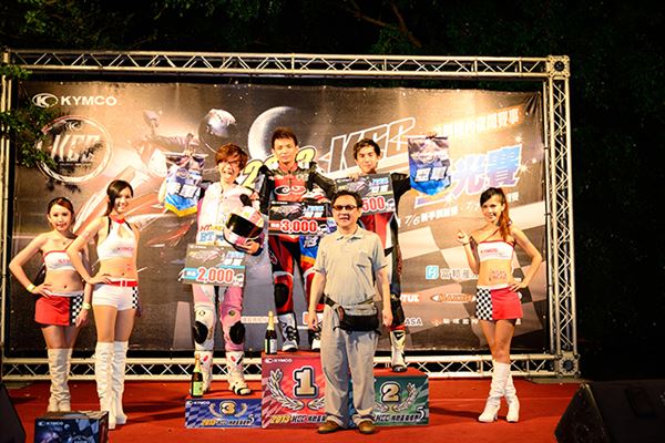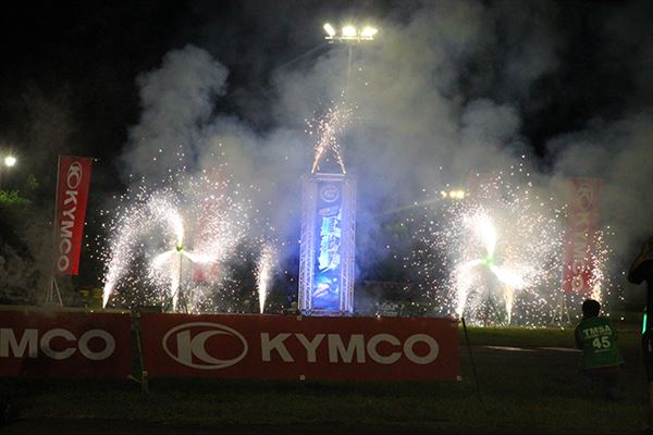 正賽在晚上八點半舉行,天色已經完全暗了下來,當場上G6的燈光一打開,特殊的晝行定位燈眉立即虜獲全場焦點,在本誌陳又新社長與光陽營業部蔡榮霖經理的開幕下,點燃了一連串的煙火,宣告G6星光賽的開場。
