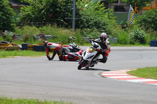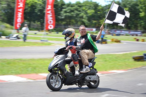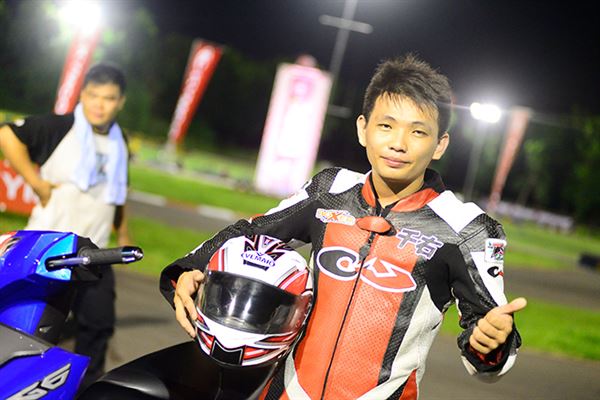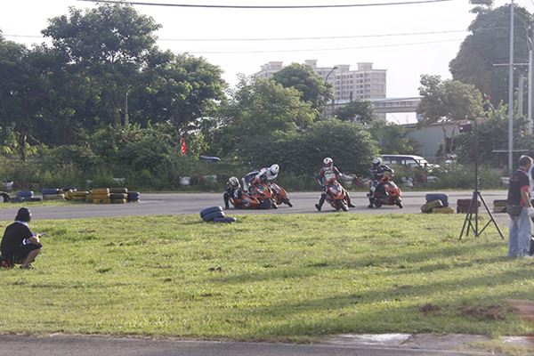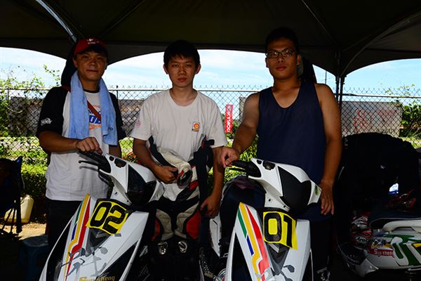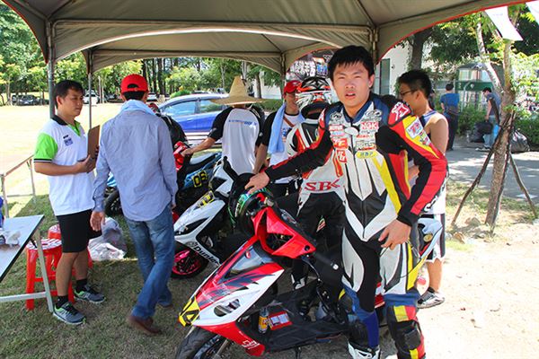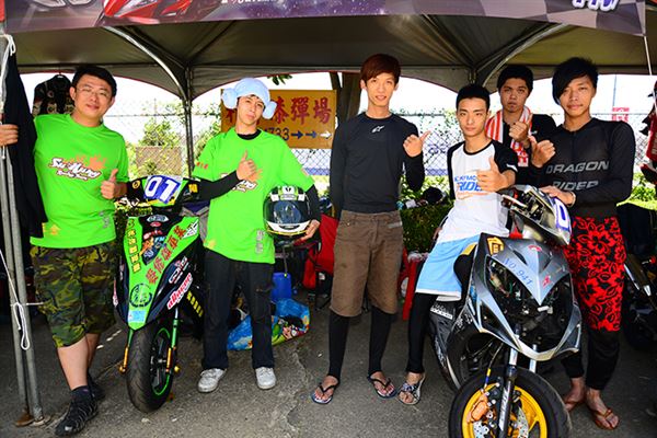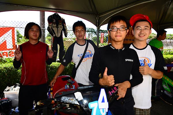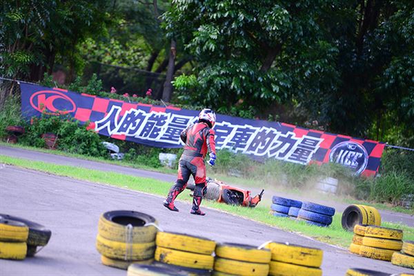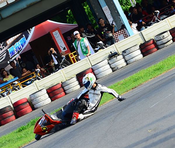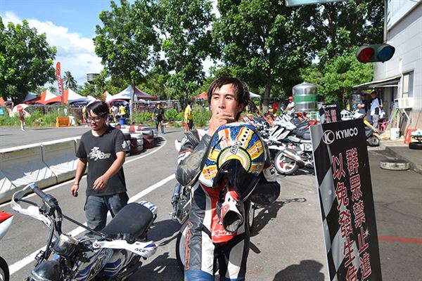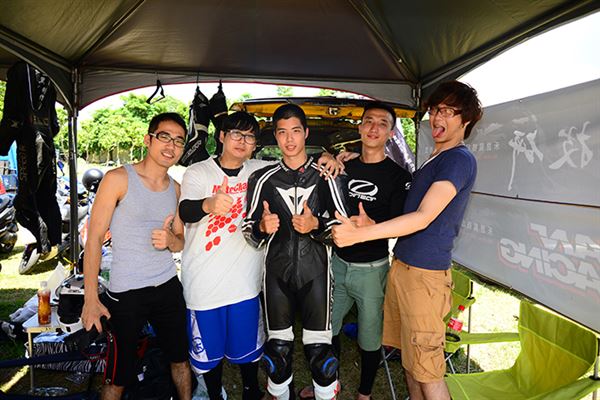 去年他還只是陪跑的小車手,今年之初開始練習騎乘速克達的技巧,認識高至均的朋友們都知道,高至均為了參加速克達的比賽,已經在賽車場中大摔不知道多少回了。然而高至均在不斷地努力練習下,終於成長為車隊的主力車手,其實小編在禮拜五下午抵達台糖賽車場時,看到高至均練習時最後還是以摔車收場,但已經跑出相當出色的成績。