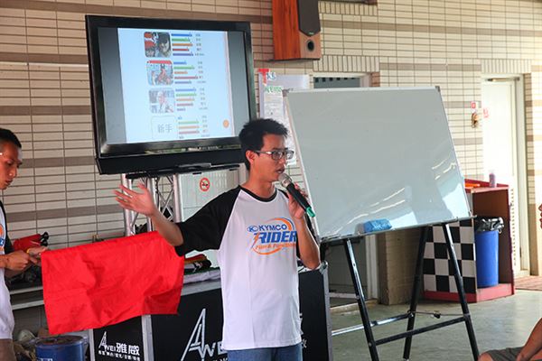 會場上由摩托車雜誌社的王鈴柏,負責講解賽道上的規則與比賽禮儀,另外由武田車業的林俊榮,傳授賽車基礎改裝認識與騎乘技巧。