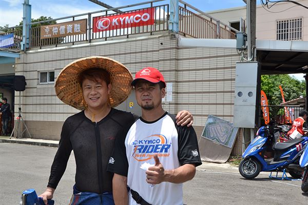 阿估與威翔車業的蔡政佑逗趣合照