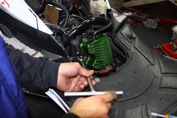 雖然此車是125C組的賽車,改裝幅度並不大,但精細度店家可是斤斤計較、力求完美絲毫不馬虎,不論是懸吊系統的選用、傳動的配置、就連後制動系統也追求細膩的手感,改裝可調式的拉桿的,在引擎動力方面使用科學化的方式來針對車輛作調整,數字會說話,一台賽車設定的好壞可不是靠嘴巴說了就算數!