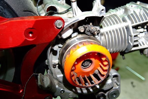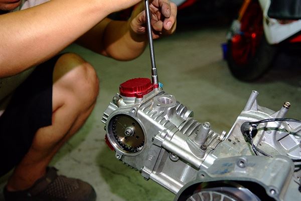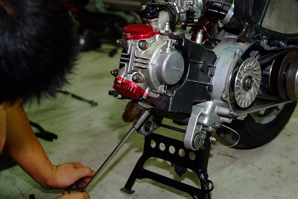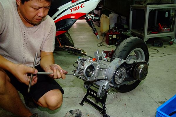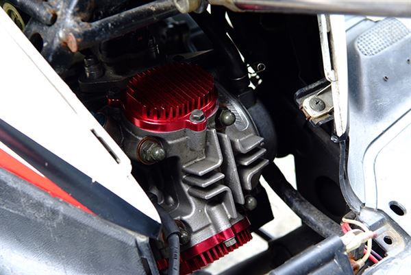 引擎方面則使用了曲軸倒拉,搭配大缸徑汽缸的改裝手法。這樣做的好處除了讓引擎轉速提升更為快速外,活塞上下行程縮短、曲軸的輕量化等,都還可以減輕引擎運轉時內部的阻抗。而汽缸、汽缸頭及曲軸也都使用DY登宇自家開發的TRHC套件,該引擎套件除了擁有良好的進氣效率以產生強大的動力,在散熱及耐久性上也擁有不錯的表現。
