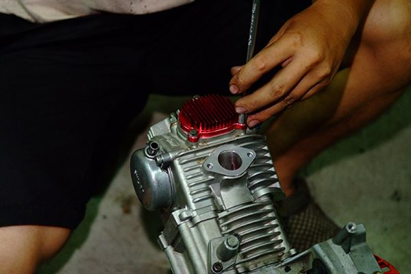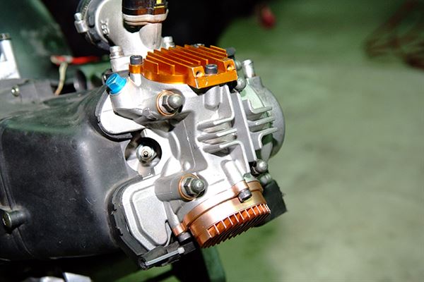 TRHC的缸頭是可以安裝原廠的氣門外蓋,不過比賽車的話則是改裝了鋁合金的氣門外蓋,由於多了散熱片,而且缸頭的上方正好又是外露直接接觸空氣的部份,因此可以得到相當不錯的散熱效果。