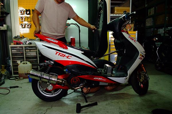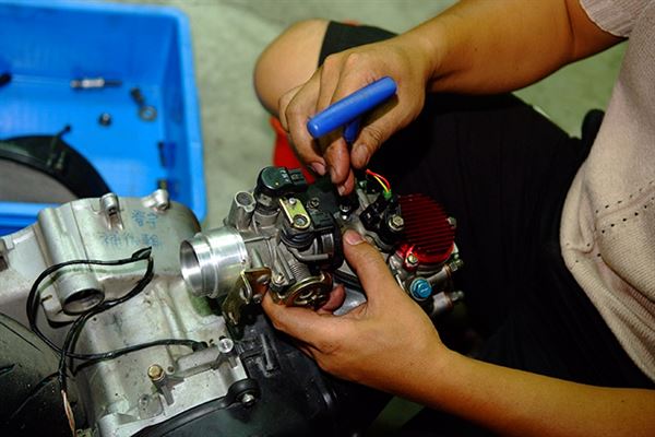 在節流閥的改裝方面,並沒有使用市面上的改裝品,而是選擇三陽RV 180的KEIHIN 30口徑的節流閥。因為經過測試,這組原廠的KEIHIN節流閥也有不輸一般改裝品的表現,且品質也頗為可靠,因此成為改裝比賽車的最佳選擇。
