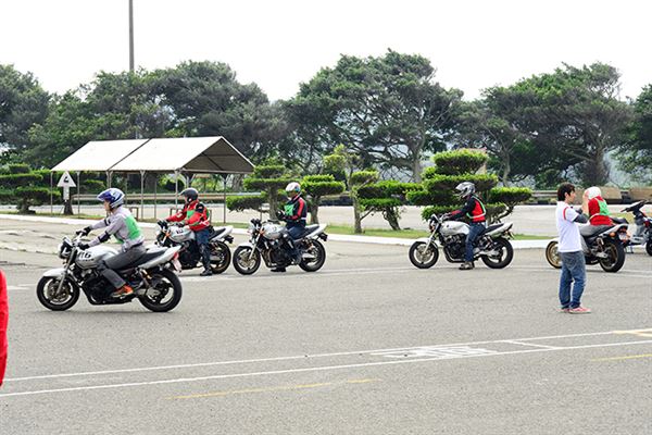 訓練課程包括定圓、繞八、急煞,還有最後的賽道模擬賽。要取得選手資格,除了第一天早上的學科測驗要合格,第二天還要通過賽道成績標準,才能領取正式的合格證書,否則還要再來補考喔。