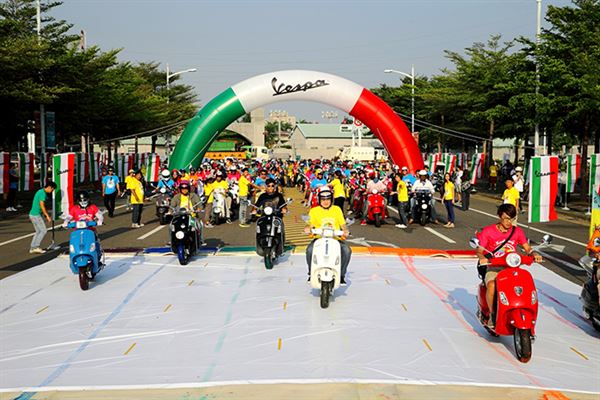 活動當天高雄集結了準備出發的VESPA車主,前往田寮頭前園餐廳。各色各樣的VESPA全數出籠,車主更是參與盛宴般的精心打扮,展現出VESPA的經典線條與過人美感!中午VESPA車主集結頭前園餐廳,於餐前領取彩虹T恤、手環、旗幟與抽獎單,也趁著用餐之際,依照車色與組別換上活動專屬彩虹T恤,讓現場頓時猶如彩虹高掛。在享用美味午餐與抽獎活動後,車主們整裝前往最終目的地——「夢時代時代大道」。在前導車帶領下,數百輛VESPA依序前進,車主臉上掛著自信的笑容,不斷獲得來自其他用路人的羨慕眼光與大拇指肯定,也讓各色各樣的VESPA增豔了高雄原本灰濛濛的道路,使市容瞬間美麗活潑了起來。