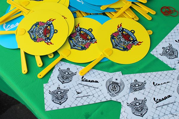 Vespa彩虹嘉年華的紀念貼紙和扇子