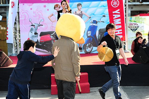 現場熱身活動在主持人以獎品略施甜頭之後,現場氣氛可說是達到了最高潮,所有的車主都擠在舞台前高舉雙手大喊「選我!選我!」。另外主辦單位也很貼心地準備了更大的獎品,讓車迷上台互相PK,只要能夠大聲喊出對Cuxi的熱愛,就能贏得YAMAHA原廠的精美好禮。