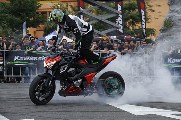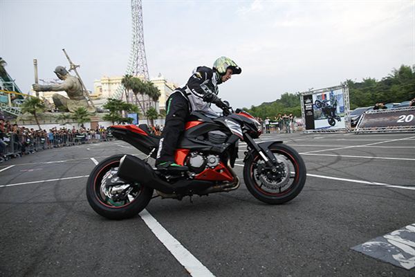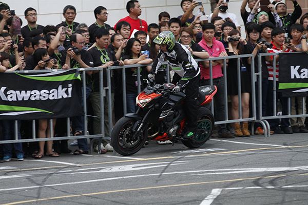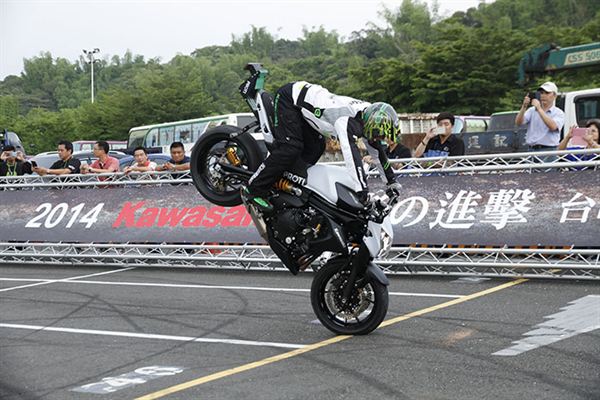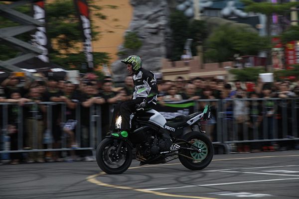 Oliver Ronzheimer和他的工作團隊這次準備了改裝超大後齒盤及追加各處腳踏的Z800以及ER-6n,一出場就以滑胎美技博得滿堂彩,隨後而來的燒胎更讓全場瀰漫著令人熱血沸騰的橡膠燒焦味,翹孤輪更是有如家常便飯般隨心所欲,更甚者坐在車頭上騎都不是問題。