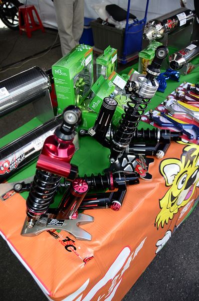 晉岡國際在本次的G6組別統規賽中,提供了125、150車款H1系列手工排氣管,前段也使用材質較好的白鐵,而G6 150組,更使用強打的Z1避震器,為長度、阻尼可調,讓使用者可依照不同的載重做調整。