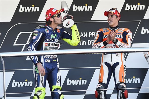 開賽時Rossi與Marquez有著激烈的纏鬥