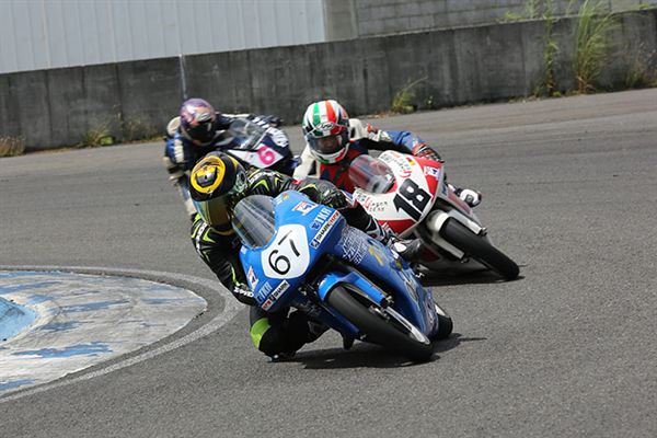 這一場TMRRC的正式賽在中午1點半舉行,當天PIC豔陽高照,氣溫高達31度,對穿著厚重皮衣的摩托車手來說實在辛苦。紅燈熄滅,所有250㏄的賽車一起殺出,那畫面像極了MotoGP裡的Moto3比賽。起跑後強勢領頭的是7號『勁嘉科技』劉騰徽,但一圈過後在看台前的大直線路段,代表台灣參加ADC的莊安育利用劉騰徽車後的真空帶一舉實現超越,看的出這完全是他從ADC的激烈競爭中磨練回來的技術,隨後ADC選手莊安育和劉騰徽的差距漸漸拉開,兩人一前一後呈現獨走之姿,最後雙雙以破2分內的驚人單圈分別拿下「Moto3組」錦標賽的冠軍和亞軍!