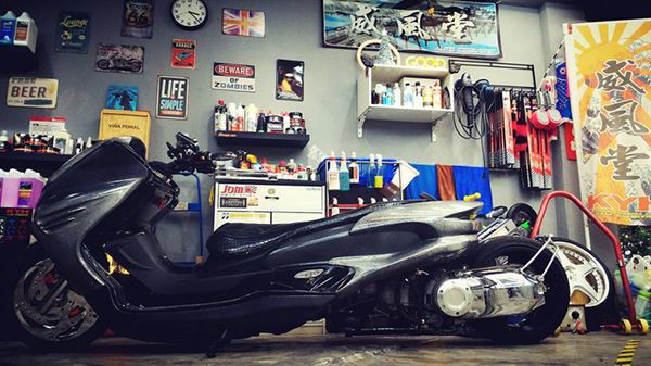 以Café Racer的概念來打造HONDA ZOOMER以全手工客製打造的速克達全車大量的使用鈦合金,引擎使用GY6系統,67mm陶瓷汽缸鍛造活塞820條曲軸232cc美國RUCKHOUSE 13吋二片式鍛造鋁圈、德國Motogadget儀表系統。